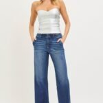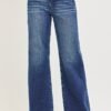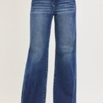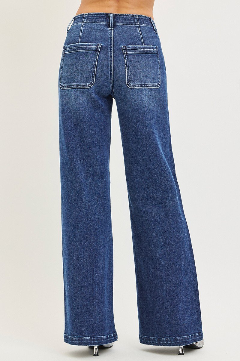Discover the perfect blend of trend and comfort with these high rise wide leg jeans in a classic dark wash. The elevated high-rise waist provides a flattering, leg-lengthening fit that cinches and supports, while the wide leg silhouette delivers a modern, sophisticated look that’s effortlessly chic. Unique slanted pockets add a fashionable twist to the classic denim design, setting these jeans apart with subtle edge and practicality.