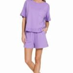 This 100% cotton lavender set features exposed seams, pockets, and a relaxed boxy fit.