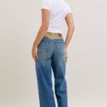 Update your wardrobe with a modern and stylish twist on classic denim. These Mid-Rise Column Straight Jeans feature a unique corduroy waistband that adds a fashionable texture contrast to the traditional blue denim body. Perfect for creating a sophisticated yet casual look, these jeans provide both style and structure.