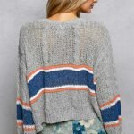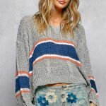 The V-neck, straight-sleeve, cropped fit top is designed in acrylic sweater material, featuring a unique cable knit detail with a pointed striped pattern. This stylish top combines classic cable knit with modern design elements, creating a sophisticated and eye-catching look. The cropped fit adds a contemporary touch, making it ideal for pairing with high-waisted bottoms. Whether dressed up or down, this top is versatile and fashionable for various occasions. Elevate your wardrobe with this chic and trendy V-neck sweater top that offers a twist on traditional knitwear.