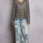 - Features: Openwork knit, stripe pattern