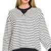 Black & White Striped Round Neck Sweatshirt
