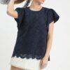 Floral Lace Overlay Flutter Sleeve Top