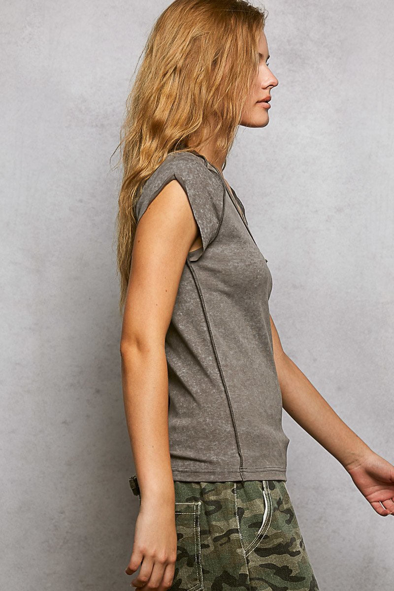 Redefine your everyday basics with this Vintage Wash Exposed Seam V-Neck Tee. This isn’t just another t-shirt; it’s a statement piece designed for the modern woman who values effortless style and premium comfort.