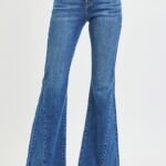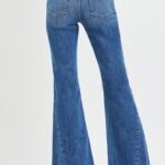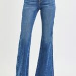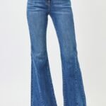 Embrace a touch of retro-inspired sophistication with these mid rise flare jeans in a deep dark wash. The thoughtful side seam detailing adds subtle yet eye-catching interest, elevating the classic flare silhouette to a modern essential. The mid-rise waist sits comfortably for a flattering, curve-enhancing fit that transitions seamlessly from casual days to evening outings, while the flare leg creates a balanced, leg-lengthening effect that’s both stylish and versatile.