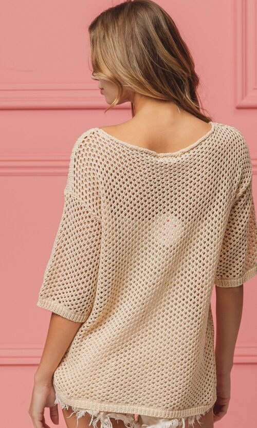 Lightweight sequin flag knit cover-up top for easy summer layering.